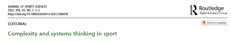 I recently guest edited a Special Issue for the Journal of Sports Sciences titled ‘Complexity and Systems Thinking in Sport’ with Paul Salmon and Sam Robertson. The special issue aimed to bring together and showcase a growing body of complex systems research in sport science. The Editorial we wrote provides an introduction on the topic and why it is critical we start to use this systems thinking lens to tackle some of sports most persistent problems. See online version of the editorial here Complexity and systems thinking in sport